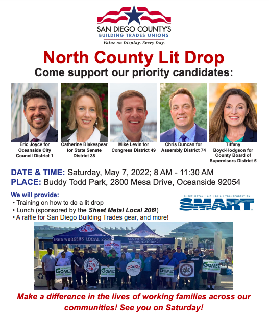 WHAT: Building Trades Election Action – South Bay Lit Drop