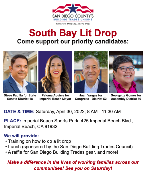 WHAT: Building Trades Election Action – South Bay Lit Drop