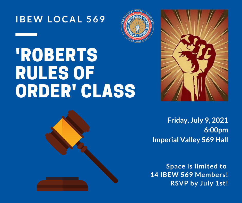 RSVP: https://actionnetwork.org/events/ibew-569-roberts-rules-of-order-class/