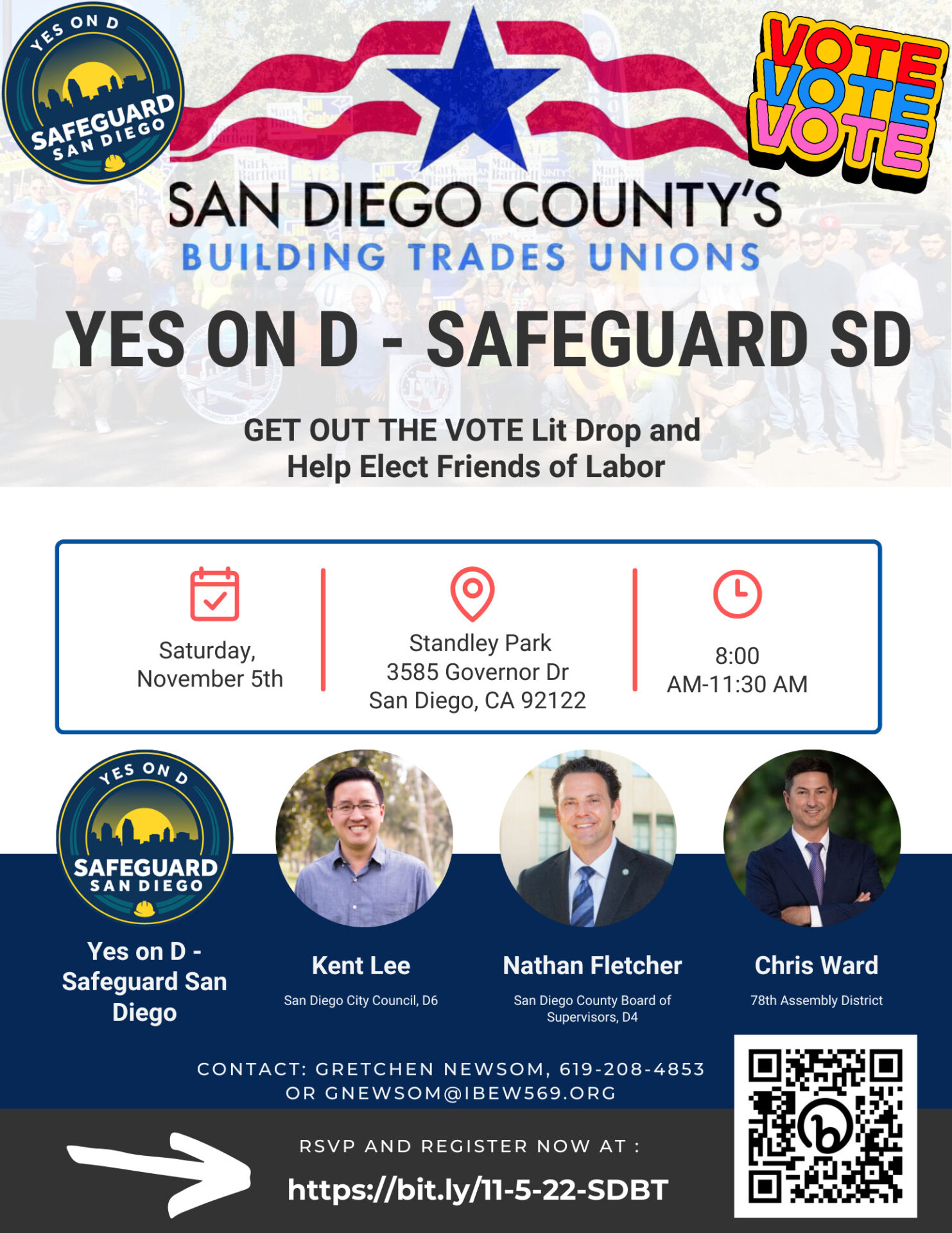 WHAT: GET OUT THE VOTE Yes on D / SAFEGUARD SD Lit Drop and Help Elect Friends of Labor