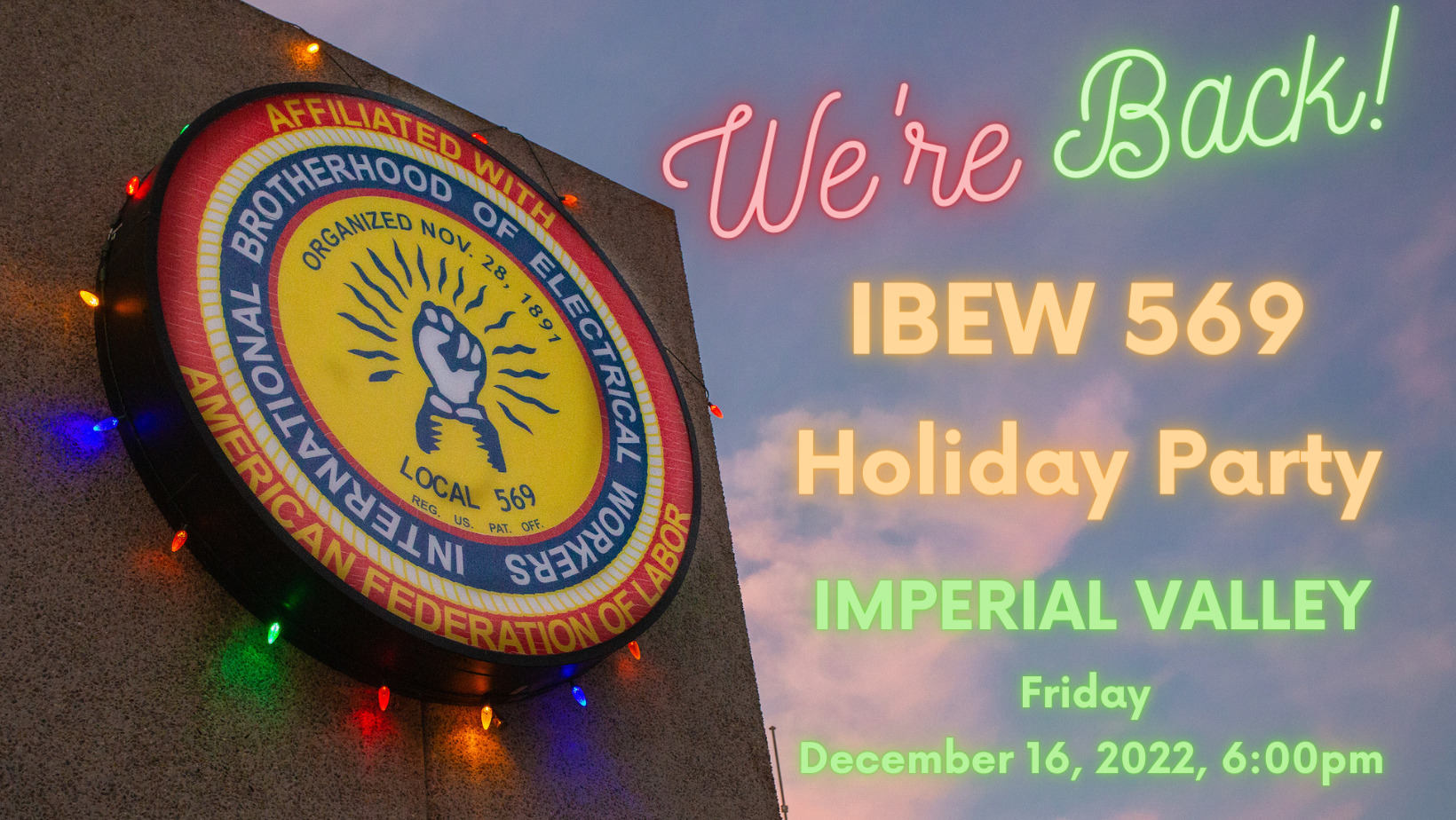 The International Brotherhood of Electrical Workers (IBEW) Local 569 invites you to celebrate the holidays!