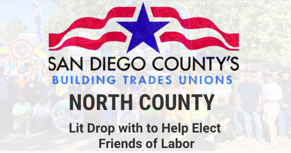 WHAT: SD Building Trades Election Action – NORTH COUNTY – Lit Drop to Help Elect Friends of Labor