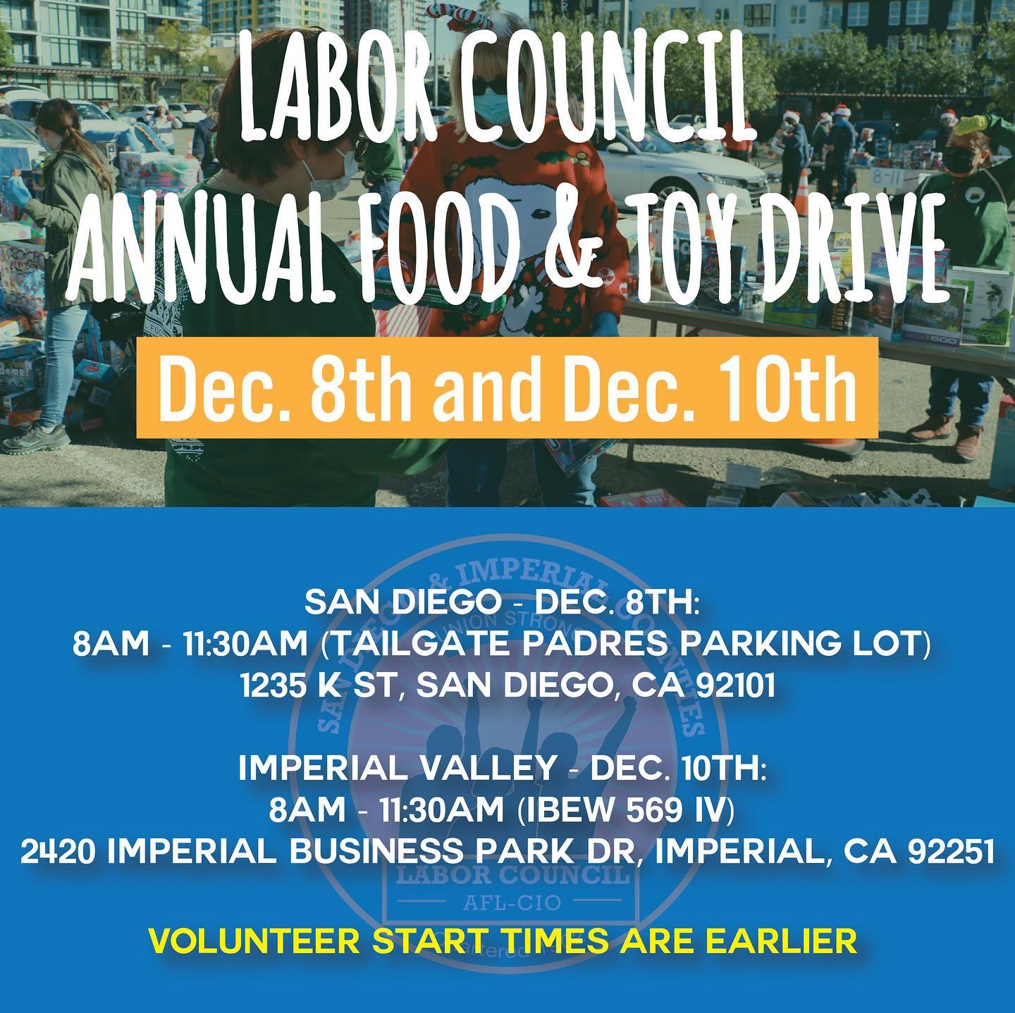 IBEW 569 Volunteers at Labor Council SD Food & Toy Distribution