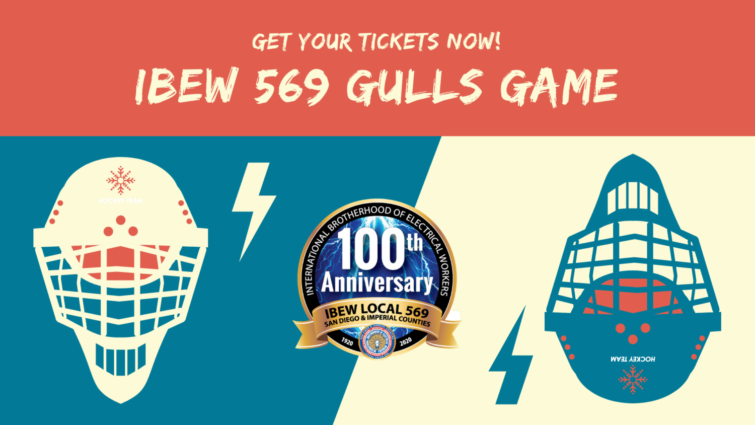January 9, 2020August 22, 2022IBEW 569 Members IBEW 569 Gulls Game – Get Your Tickets Now GET YOUR TICKETS NOW! 1st Annual IBEW Gulls Day SAN DIEGO GULLS vs. San Jose Barracudas Saturday, February 22nd 7:00pm SECTION Face […]