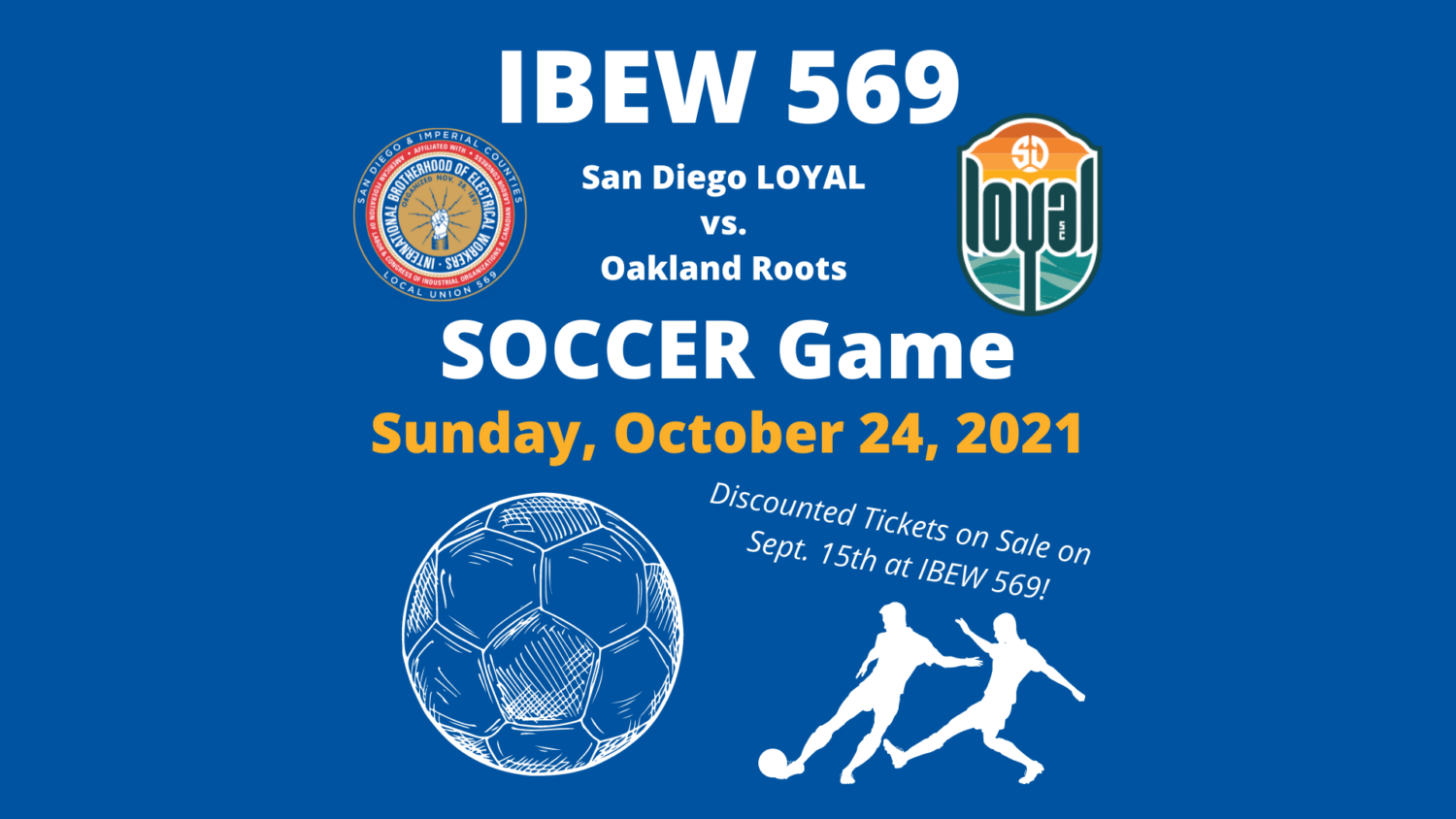 October 17, 2021February 9, 2024Community, IBEW 569 Members Discounted Tickets! IBEW 569 at San Diego LOYAL SOCCER Game on 10/24/21 WHAT: IBEW 569 & Labor Friends at San Diego LOYAL vs. Oakland Roots SOCCER Game WHEN: Sunday, October 24th | Gates Open: 1:30pm | Kick-Off: 3:00pm […]