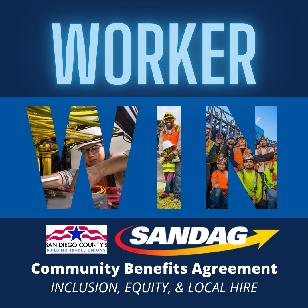 December 17, 2021February 9, 2024IBEW 569 Members, Take Action HUGE WIN FOR WORKERS! — SANDAG $160B PLA — SANDAG has approved a Community Benefits Agreement with the San Diego Building Trades Council that emphasizes inclusion, equity and local hire! The […]