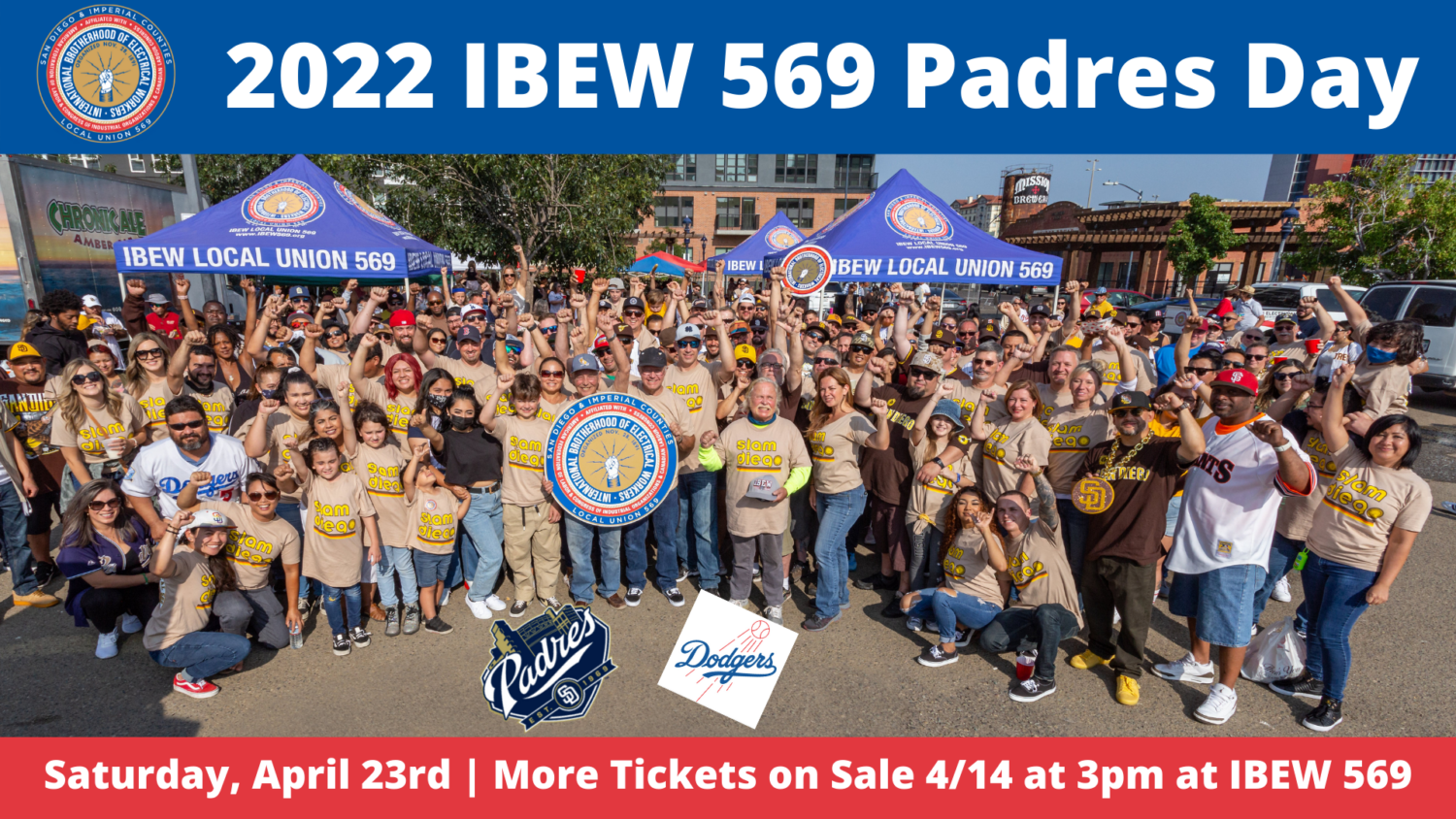 April 13, 2022February 9, 2024Community, IBEW 569 Members MORE – IBEW 569 PADRES TICKETS on Sale Tomorrow at 3pm! IBEW 569 Sisters and Brothers: Great News! We’ve managed to acquire 150 more Padres tickets! Starting Thursday, April 14th at 3pm, new discounted tickets […]