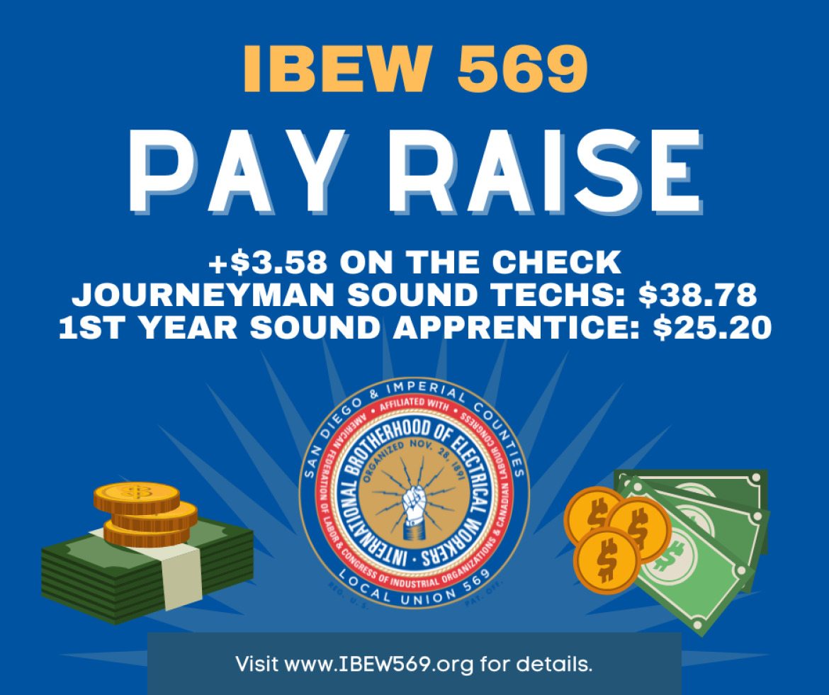 August 29, 2022February 9, 2024Uncategorized Attention IBEW 569 Journeyman Sound Techs – STARTING TODAY – Your wages increase by $3.58 to $38.78 per hour (all on the check). First […]