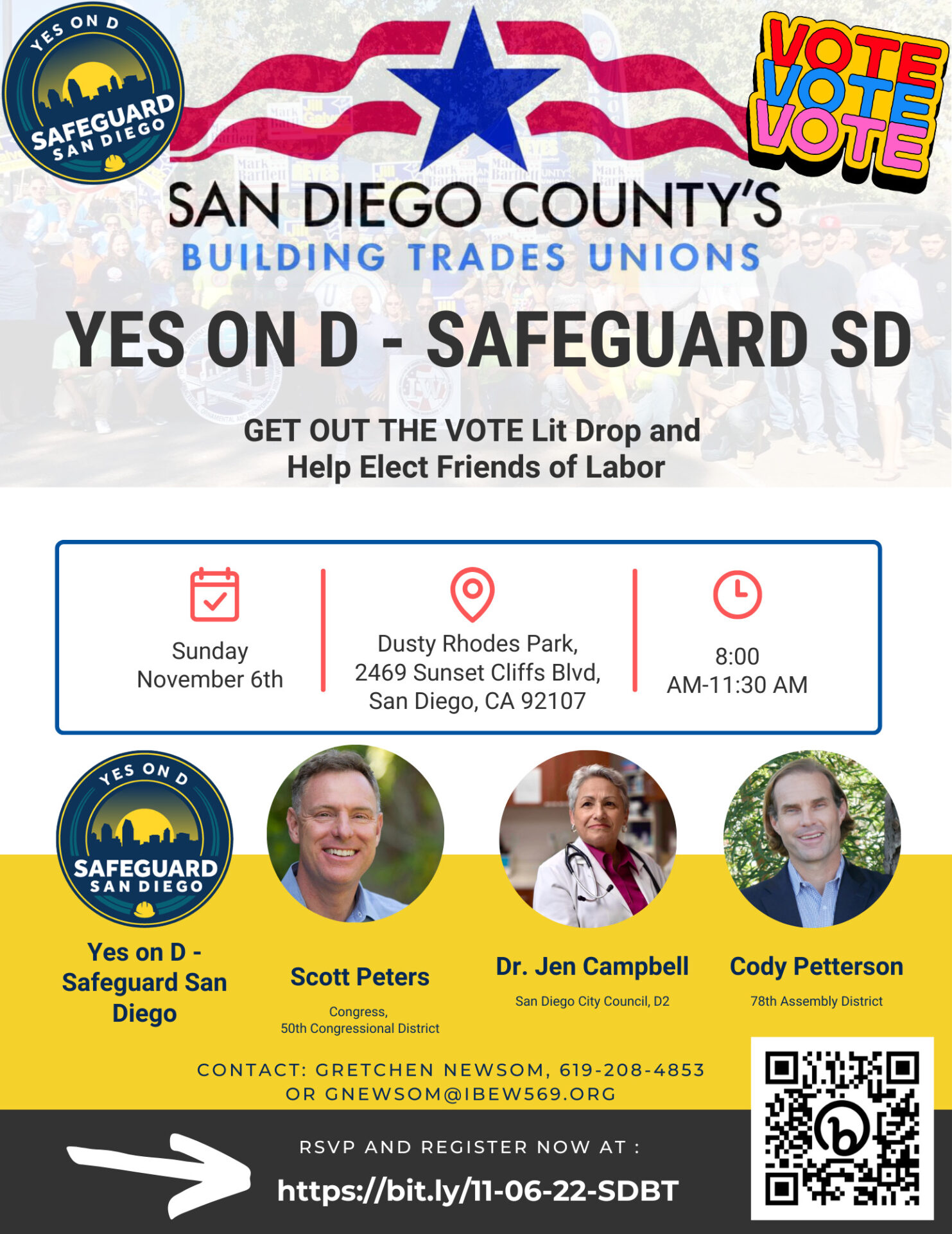 WHAT: GET OUT THE VOTE Yes on D / SAFEGUARD SD Lit Drop and Help Elect Friends of Labor