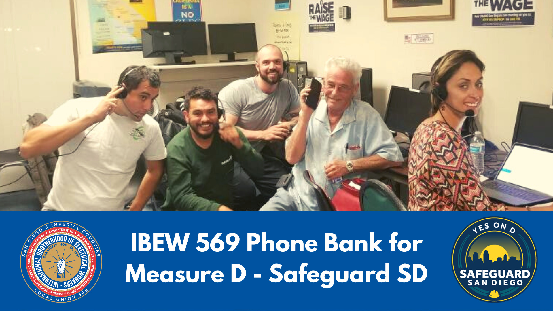 Phone bank with IBEW 569 to call our members and remind them to vote for our endorsed candidates – and help pass Measure D to “Safeguard SD” and repeal the PLA Ban in San Diego!