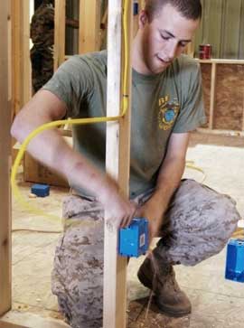 As participants in the Building Trades Helmets to Hardhats program, IBEW Local 569 provides returning veterans with a pathway into a middle-class career in the construction industry. Military personnel who have worked in an electrical or electronic “Military Occupational Specialty” in the armed services are able to enter our apprenticeship program through a special application process or be placed in Journey-level positions according to their skill level. This highly successful national program has placed veterans all over the country in skilled construction careers with family healthcare, pension retirement and excellent wages.